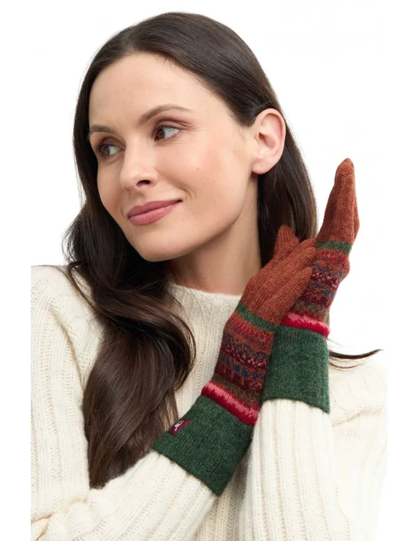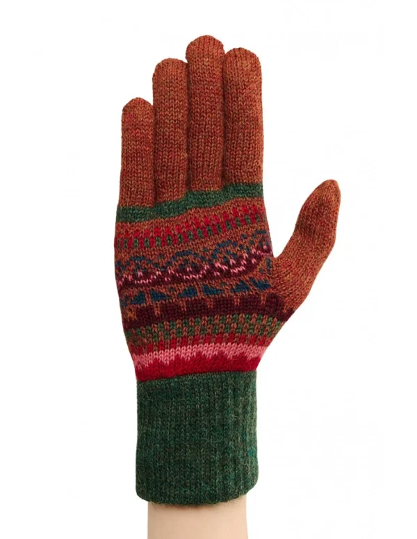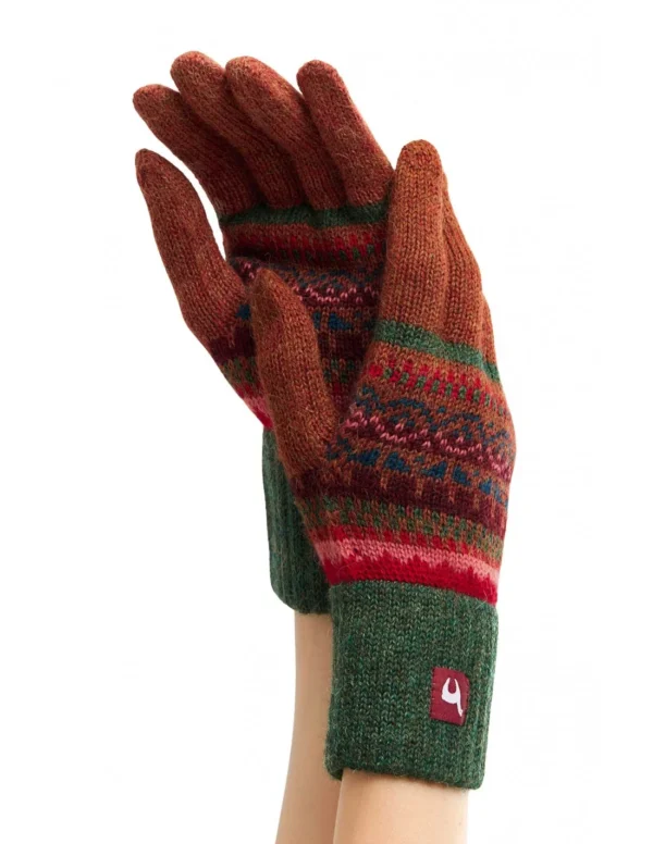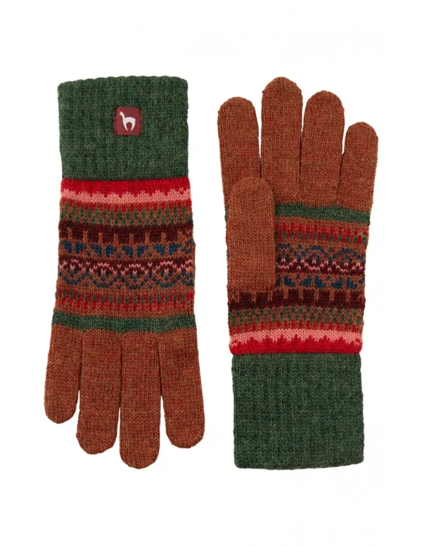 Elegante Fingerhandschuhe „LUNA“ aus 100 % Babyalpaka. Weiche, warme und leichte Naturfaser im stilvollen Jacquard-Design mit farblich abgesetzten Fingern in Rot und Rippbündchen in Grün. Fühlt sich an wie eine sanfte Umarmung – Wärme, Stil und Bewegungsfreiheit perfekt vereint.