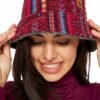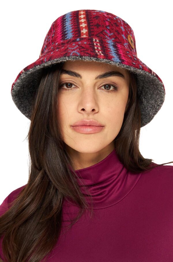Entdecken Sie den Charme zweier Welten mit diesem einzigartigen, wendbaren Bucket Hat aus Alpakafaser. Die eine Seite ziert ein lebendiges Ethno-Muster, welches aus Stoffresten gefertigt ist und somit jeder Hut ein wenig anders und absolut einzigartig ist. Perfekt, um Farbe in trübe Wintertage zu bringen. Wendet man den Hut, erhält man eine elegante, graue Variante, die zu jedem Outfit passt und dezente Eleganz ausstrahlt. Die feine Alpakafaser verspricht Wärme und Weichheit. Ob für einen Stadtbummel oder als trendiges Accessoire für Outdoor-Abenteuer.