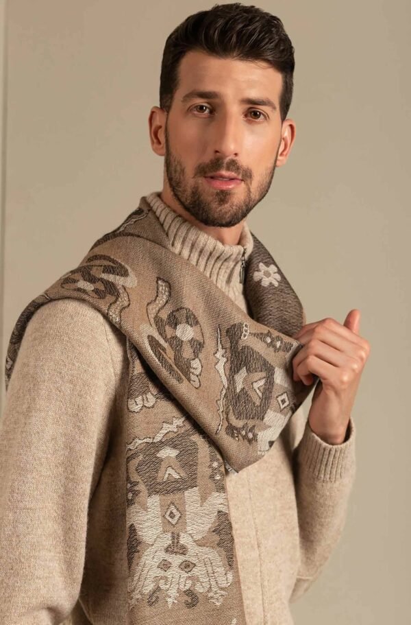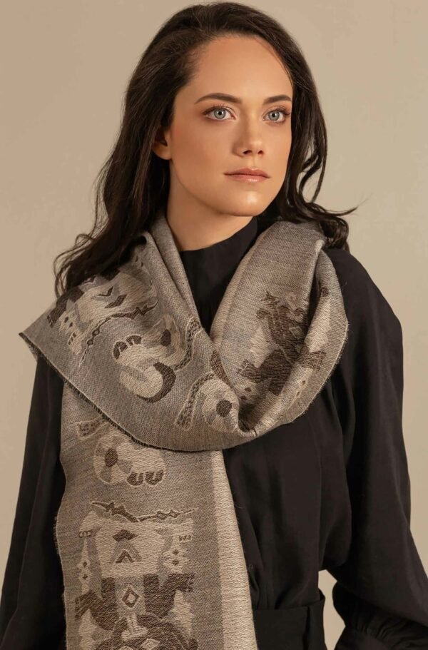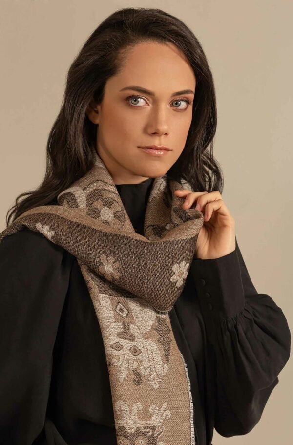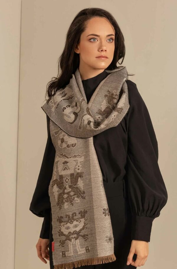 Ein repräsentatives Accessoire der Nazca-Kultur. Hüllen Sie sich in diesen eleganten Wendeschal und spüren Sie die Weichheit eines Stoffes aus Baby-Alpaka und Seide.